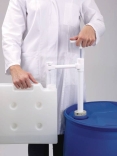 Pompe a pistone, in PTFE, per ultrapuriPompe a pistone per fusti, in PTFE con tubo di mandata rigido e rubinetto di arresto in PTFE. L'elevata resistenza chimica del PTFE e FEP permette di travasare, anche i liquidi, che attaccano materiali convenzionali come PP o PVC, ad eccezione del fluoro elementare. Questa pompa a pistone è particolarmente adatta anche per il trasferimento di liquidi ultra puri. Il rubinetto impedisce la fuoriuscita di vapori pericolosi e smette di gocciolare dopo il travaso. | ||||||||||||||||||||||||||||||||||||||||||||||||||