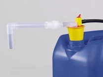 Pompe Otal, da taniche, a soffietto, piedePompa OTAL con pompa soffietto a pedale, ideale per avere le mani libere durante il travaso. Completa di tubi di aspirazione ed espulsione con caratteristiche, a secondo del modello scelto, e tappo universale in PVC morbido, per palloni e fusti, capacità fino a litri 60, con aperture di Ø mm 30-70. Il tubo pescante telescopico in PP, con una semplice pressione, si adatta alle varie altezze dei contenitori. Il tubo di erogazione può essere sostituito rapidamente e facilmente dopo l'uso. Resistenza agli acidi, alle soluzioni alcaline ed ai detergenti a secondo del modello scelto. Indicazioni d'uso: Adeguare il tubo d'aspirazione in funzione dell'altezza del contenitore, fissare il raccordo sulla bocca del contenitore, inserire il tubo di espulsione, creare una pressione premendo più volte la sfera rossa. Per dettaglio delle compatibilità chimiche vedere tabelle tecniche. | |||||||||||||||||||||||||||||||||||||||||||||||||||||||||||||||||