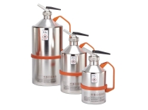 Bottiglie in acciaio, idonee stoccaggio solventiBottiglie con beccuccio di dosaggio e la manipolazione sicuri di piccole quantità di liquidi infiammabili. Protezione antifiamma rimovibile, nel raccordo di riempimento e valvola di sovrappressione nel beccuccio di fine dosaggio a chiusura automatica (bilanciamento della pressione da circa 0,3 bar). In acciaio inossidabile AISI 316 Ti (1.4571), spessore 0,6 mm, guarnizioni in PTFE, maniglia in alluminio verniciato a polvere, raccordo di chiusura 1¼". | |||||||||||||||||||||||||||||