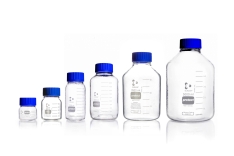 Bottiglie plastificate, tappo GLS 80, vetro Duran incoloreBottiglie con filettatura GLS 80® con rivestimento in plastica PU trasparente per ridurre i rischi di vetri rotti e schizzi di liquidi in caso di rottura. Bocca larga in vetro borosilicato DURAN® 3.3. Facile accesso al contenuto della bottiglia grazie all'ampio diametro del collo della bottiglia Fornite complete di tappo in polipropilene blu e anello versatore antigoccia per un utilizzo fino a 140 °C. Tutti i componenti sono completamente autoclavabili a 121 o 134 °C. Scala di facile lettura con segni di graduazione per stimare il contenuto in ceramica bianca a fuoco altamente resistente. | ||||||||||||||||||||||||||||||||||||||||||||||||||
