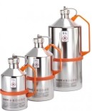 Bottiglie safety, chiusura tappo a viteBottiglie di sicurezza, con tappo a vite, con superficie elettrolucidata o opaca, per lo stoccaggio e la distribuzione di liquidi e sostanze chimiche infiammabili. In acciaio inox 1.4571 di alta qualità (spessore mm 0,6), tappo con guarnizione in PTFE ad elevata resistenza chimica e anello di protezione in plastica sul corpo della bottiglia. Impugnatura in alluminio verniciato a polvere, modello non lucidato (0HKU) in acciaio inossidabile, forma ergonomica per una presa sicura. Rompifiamma per la protezione dalle fiamme libere ed esplosioni. Valvola di regolazione della pressione (sfiato da circa 0,3 bar). Tappo a vite, legato alla maniglia, da una catena flessibile, contro eventuali perdite. | ||||||||||||||||||||||||||||||||||||||||||||||||||||||||||||||||