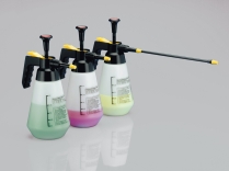 Bottiglie spruzzatore spray, in PE-HDFlacone spruzzatore a pressione, parti a contatto con il fluido PE-HD, PP, FKM, AISI 316. Getto di spruzzo regolabile, diametro ugello 0,8 mm, temperatura del liquido: 0 - 30 °C Il robusto contenitore in plastica ha una scala in rilievo graduata, che indica il volume del liquido con intervalli di 0,25 litri. Il dado dell'ugello regolabile consente di regolare individualmente il getto di spruzzo, da una nebulizzazione fine a un getto potente. Indicato per la disinfezione, la pulizia, la protezione delle piante, la cromatografia su strato sottile, gli usi tecnici e sanitari. Premendo ripetutamente il pomello del pistone si crea una pressione interna, mentre la valvola di sicurezza integrata protegge dalla sovrapressione (max. 4 bar). Lo spruzzatore manuale può essere pulito a fondo grazie alla facile rimozione. | |||||||||||||||||||||||||||||