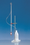 Burette automatiche compatte secondo Schilling, BLAUBRAND® classe AS, o Silberbrand classe B, in vetro incolore boro 3.3, con bottiglia in PE. Rubinetto smontabile in PTFE, striscia Schellbach nera.