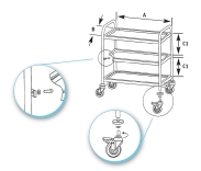 Carrelli da laboratorio in acciaio 18/10, forniti smontati.