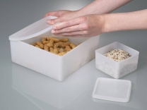 Cassette in PE, basse, con coperchioCassette in PE trasparente, basse, completi di coperchio a pressione. Ideali per il campionamento e il trasporto di paste, granuli, polveri, campioni di terreno e prodotti congelati (da -40°C a + 95°C brevemente). Impilabili, uso ideale dello spazio. | |||||||||||||||||||||||||||||||||||||||||||||||||