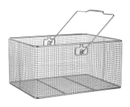 Cestelli, rete acciaio inox 18/10 lucidato, forma rettangolare con manico pieghevole.