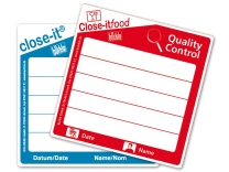 Close-it food & pharma, etichette adesiveclose-it food & pharma, è una etichetta sigillo di alluminio/carta con un adesivo approvato per l'uso con alimenti, per chiudere ermeticamente i fori, dopo il prelievo con le lance di campionamento, onde impedire alle polveri igroscopiche di aggregarsi. L'adesivo è conforme alle linee guida europee per i prodotti alimentari è indicato anche per prodotti farmaceutici, cosmetici, additivi alimentari, persino prodotti surgelati, in breve, per tutte le applicazioni in cui la pulizia è particolarmente importante. L'etichetta permette anche di riportare informazioni per il controllo di qualità (data di campionamento, rilascio sì/no, nome del tester, ecc.). Le etichette sono disponibili in diversi colori: rosso, blu, verde, giallo, nero o neutro (senza stampa in bianco) e sono scrivibili con penna a sfera, matita o pennarello. Il retro dell'etichetta è rivestito con un potente adesivo, che aderisce saldamente anche su superfici ricoperte di polvere fine, leggermente umide o addirittura ghiacciate. Le etichette sono fornite in pratici rotoli. | |||||||||||||||||||||||||||||||||||||||||||||||||||||||||||||||||||||||||||||||