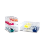 Contenitori in acrilico, per portaprovetteRack in acrile trasparente e robusto, mantiene ordinato e pulito la posizione di lavoro. Questo supporto può contenere fino a 8 portaprovette da 80 posti, per un totale di 640 microprovette da 1,5-2 ml. Il portaprovette va alloggiato in una delle otto posizioni e può essere facilmente spostato. Due modelli orizzontale o verticale per un razionale sfruttamento dello spazio disponibile. | ||||||||||||||||||||||