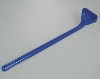 Cucchiaio triangolo monouso con manico lungo, in PS di colore blu, la forma permette di raggiungere il fondo del contenitore, per prelevare campioni di liquidi e fluidi viscosi.