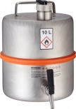 Fusti safety, rubinetto chiusura automaticaFusti di sicurezza, con tappo a vite e rubinetto a chiusura automatica, con superficie opaca, per lo stoccaggio sicuro il dosaggio di grandi volumi di liquidi infiammabili. In acciaio inox 1.4571 di alta qualità (spessore mm 0,8), tappo con guarnizione in PTFE ad elevata resistenza chimica e anello di protezione in plastica sul corpo della bottiglia. Rompifiamma estraibile per la protezione dalle fiamme libere ed esplosioni. Valvola di regolazione della pressione (sfiato da circa 0,3 bar). La leva in plastica sul tappo a vite può essere regolata per una ventilazione permanente. | |||||||||||||||||||||||||||||||||||||||||||