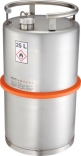 In acciaio inox 1.4571 di alta qualità (spessore mm 0,8), tappo con guarnizione in PTFE ad elevata resistenza chimica e anello di protezione in plastica sul corpo della bottiglia.