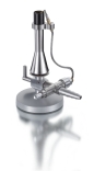 Lampade Bunsen, termocoppia, portagomma, multigasLampade Bunsen, multigas, con termocoppia magnetica. Manopola regolazione e regolazione dell'aria con ruota dentata posta in basso. Spia pilot. Attacco tubo gomma a pressione con fascetta. La termocoppia di sicurezza protegge contro la fuoriuscita incontrollata di gas. Il calore della fiamma pilota genera una tensione elettrica all'interno della termocoppia, a causa di questa tensione, una valvola magnetica nell'elemento di sicurezza rimane aperta e il gas è in grado di fluire. In caso di spegnimento della fiamma dal bunsen, la termocoppia si raffredda e la tensione elettrica diminuisce chiudendo automaticamente la valvola magnetica. L'alimentazione del gas viene interrotta e non possono fuoriuscire gas incombusti. In ottone nichelato con base in acciaio nichelato verniciata con vernice epossidica resistente agli acidi. | ||||||||||||||||||||||