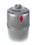 Lampada Teclu con termocoppia, completa di cartuccia alimentazione gasLampada con becco bruciatore Teclu, provvista di termocoppia magnetica completa di cartuccia di gas propano/metano ricambiabile. Manopola regolazione gas e ruota dentata dosaggio aria. Il calore della fiamma pilota genera una tensione elettrica all'interno della termocoppia, a causa di questa tensione, una valvola magnetica nell'elemento di sicurezza rimane aperta. Il gas è in grado di fluire, in caso di spegnimento della fiamma dal bunsen, la termocoppia si raffredda e la tensione elettrica diminuisce chiudendo automaticamente la valvola magnetica. L'alimentazione del gas viene interrotta e non possono fuoriuscire gas incombustili. Indicata in luoghi dove non è possibile collegarsi alla rete centralizzata per la fornitura del gas. Secondo le normative DIN DVGW reg. nr.DG-2411CM0440. Cartuccia, diametro base mm 105, ml 400, autonomia 4 ore, in accordo con EN417:2012. | |||||||||||||