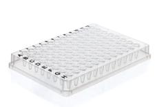Microplates PCR - qPCR, 96 well Microplates PCR - qPCR, 96 pozzetti sono la soluzione efficiente per essere facilmente riempite con pipette multicanale o robot di pipettaggio. Gli spessori uniformi e sottili delle pareti dei pozzetti assicurano un rapido trasferimento della temperatura dal termociclatore al campione, riducendo così i tempi di ciclo. Una vasta gamma garantiscefunzionalità nei comuni termociclatori per un efficiente trasferimento di calore. Per una immediata identificazione, è possibile applicare un codice a barre sulle piastre semibordate. Per qPCR, sono disponibili piastre bianche che riflettono in modo ottimale i segnali di fluorescenza. Prodotte in camera bianca, soddisfano i criteri di purezza del livello di qualità BIO-CERT® PCR QUALITY.