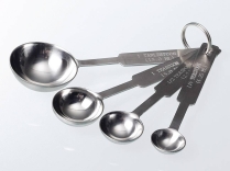 Misurini in acciaio AISI 304, prelievo mlCucchiaio dosatore in acciaio inossidabile in set da 4, come ausilio di misurazione per una misurazione facile e veloce da 1,25 a 15 ml. Il volume è inciso sul manico di ogni misurino. | |||||||||||||