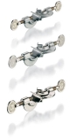 Morsetti, doppio, in zincoMorsetto doppio con corpo in zinco pressofuso verniciato a polvere. Piastrina a fissaggio filettata in acciaio nichelato o ottene nichelato. | ||||||||||||||||||||||||||||||||||||