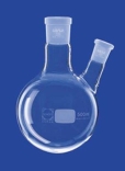Palloni fondo sferico, 2 colli dritti, uno angolato a 20° C, coni smerigliati secondo le norme DIN 12394.