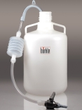Pompa a sifone per travaso con rubinetto in PE-LD/PVC. Robusta valvola a sfera in PP, buona visibilità del fluido grazie ai tubi trasparenti, protezione antipiega per il tubo con occhiello di sospensione.