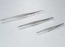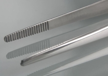 Pinzette in acciaio inox, punte grosse diritte, dentellatura interna, zigrinatura esterna antiscivolo.