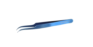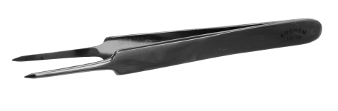 Pinzette in acciaio inox, punte fini diritte e curve piegate a squadra, con presa larga liscia.