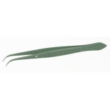 Pinzette in acciaio teflonate, punte sottili curve piegate a squadra.