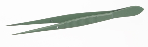 Pinzette in acciaio teflonate, punte dritte e sottili.