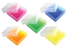 Portamicroprovette in PP, criogenia 81 postiContenitore criogenico in polipropilene. Resiste fino a -80°C. Ideale per la conservazione di provette da ml 1,5 a 2. Coperchio incernierato con chiusura a scatto, posti 81 con identficazione alfanumerica. Dimensioni mm 130x130x47. | ||||||||||||||||||||||||||||||||||||||||||||||