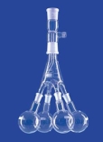 Raccoglitore di frazione Bredt completo di 4 palloni di raccolta e raccordo dritto con attacco GL per vuoto in vetro Duran.