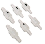 Valvola di non ritorno con freccia direzionale goffrata o stampata in nero. Estremità ad oliva per tubi.