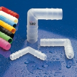 Raccordi forma a L rastremati in PP max 135°C, in PDVF max 160°C.