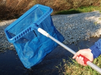 Retini per aste, in PVC/PA, sacca mm 250Retino in PVC/PA colore blu per il prelievo di campioni solidi e organici dai corsi d'acqua. Tramite l'opportuna asta telescopica può arrivare fino ad una profondità di 6 metri. Dimensioni retino mm 190x430, profondità mm 250, larghezza delle maglie mm 2-5. | |||||||||||||