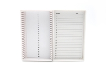 Scatole portavetrini in ABS, posti 25Scatole portavetrini in ABS, posti 25, perfette per la conservazione o il trasporto dei vetrini. Disponibili con rivestimento in sughero o spugna. Sia il rivestimento che le guide sono numerate per un facile inventario. | |||||||||||||||||||||||||||||||||||||||||||||||||||||||||||||||||||||||||