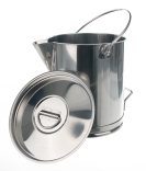 Contenitori, manico, maniglia e coperchi in acciaioContenitori in acciaio inox 18/10, con becco per un facile versamento senza schizzi. Manico superiore e presa a manigli inferiore per un pratico uso in fase di travaso. Graduazione interna divisione 1 litro. Forma tipo secchio. Coperchi con presa a maniglia pieghevole, bordo rialzato e arrotondato in acciaio inox 18/10, da ordinare separatamente. | |||||||||||||||||||||||||||||||||||||||||||||||||