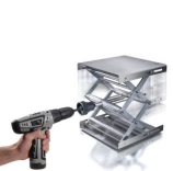 Sostegni, tavolini elevatore, acciaio, trapano inclusoSostegni, tavolini ad elevazione con trapano, manopola in bachelite per una fine regolazione dell'altezza. Quattro piedini in gomma, fissati sulla base del tavolino, evitano accidentali spostamenti. Il foro sul piano permette di fissare un'asta con morsetto. Fornito con trapano avvitatore a batteria Labjack DIN 12897. Nuova costruzione brevettato DE 20 2010 006 420. Regolazione dell'altezza a mano o trapano sicura, rapida. | |||||||||||||||||||||||||||||||||