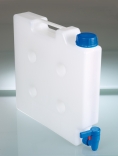 Taniche Flat, rubinetto CompactTaniche Flat con rubinetto Compact: la coppia perfetta, quando lo spazio è limitato!La tanica ha una larghezza ridotta di 6,5 cm o 12,5 cm e richiede pochissimo spazio, facilitando il posizionamento sugli scaffali. La struttura a coste e i lati spessi lo rendono molto stabile e consentono anche uno stoccaggio piatto. Tappo di chiusura entimanomissione e maniglia per una manipolazione sicura e un facile trasporto. Il rubinetto Compact non sporge oltre il bordo inferiore del contenitore, ideale per l'uso in frigoriferi e su scaffali. Il rubinetto è realizzato in PP, PE e PTFE, materiali che offrono un'eccezionale resistenza chimica agli acidi e agli alcali e si adatta a tutti i contenitori con filettature di collegamento G 3/4". | |||||||||||||||||||