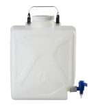 Taniche in PE-HD, con tappo e rubinettoBottiglione rettangolare Nalgene in polietilene a bassa densità completa di rubinetto. Dotate di manico in acciaio inossidabile e un'ampia apertura per facilitare il riempimento e la pulizia. Graduazione stampate in incrementi di 5 litri. Completo con tappo di chiusura a vite in polipropilene con guarnizione in TPE. | ||||||||||||||||||||||