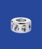 Tralicci, Morsetti forma disco, per aste 8 fori M 12Morsetti forma disco, per aste 8 fori, filettatura M 12, foro centrale per barra dia. 22 mm, regolabile in altezza. Completo di vite a brugola M 12. Materiale: acciaio cromato. | |||||||||||