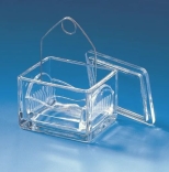Vaschetta vetro, colora vetrini, con cestelliVaschetta in vetro con coperchio per la colorazione dei vetrini, da utilizzare con i vari cestelli (forniti separatamente). Si possono ottenere diverse alternative. Soluzione A (Vaschetta+Cestello in vetro+Manico acciaio). Soluzione B (Vaschetta+ Cestelli con manico, ad asta o pieghevole). Caratteristiche componenti: Cestello in vetro forato per inserimento manico acciaio. Cestello in acciao con asta lunga. Cestello in acciaio con manico pieghevole, permette la chiusura della vaschetta. | |||||||||||||||||||||