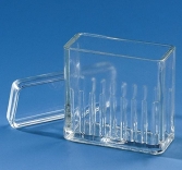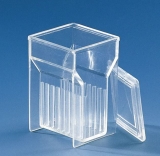 Vaschetta vetro, di HellendahlVaschetta di Hellendhal in vetro incolore per la colorazione dei vetrini portaoggetto da mm 26x76. Le larghe scanalature laterali facilitano l'inserimento di vetrini. Completa di coperchio. | |||||||||||||||||||||||||||||
